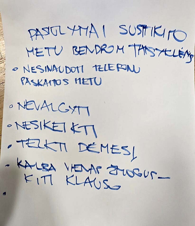 Pirmieji užsiėmimai jau įvyko – tai buvo savęs pažinimo etapas, padėjęs sustiprinti grupės ryšius ir paskatinęs dalyvių kūrybiškumą. Dabar laukia svarbiausias etapas – sprendimas, kokį galutinį produktą kursime.