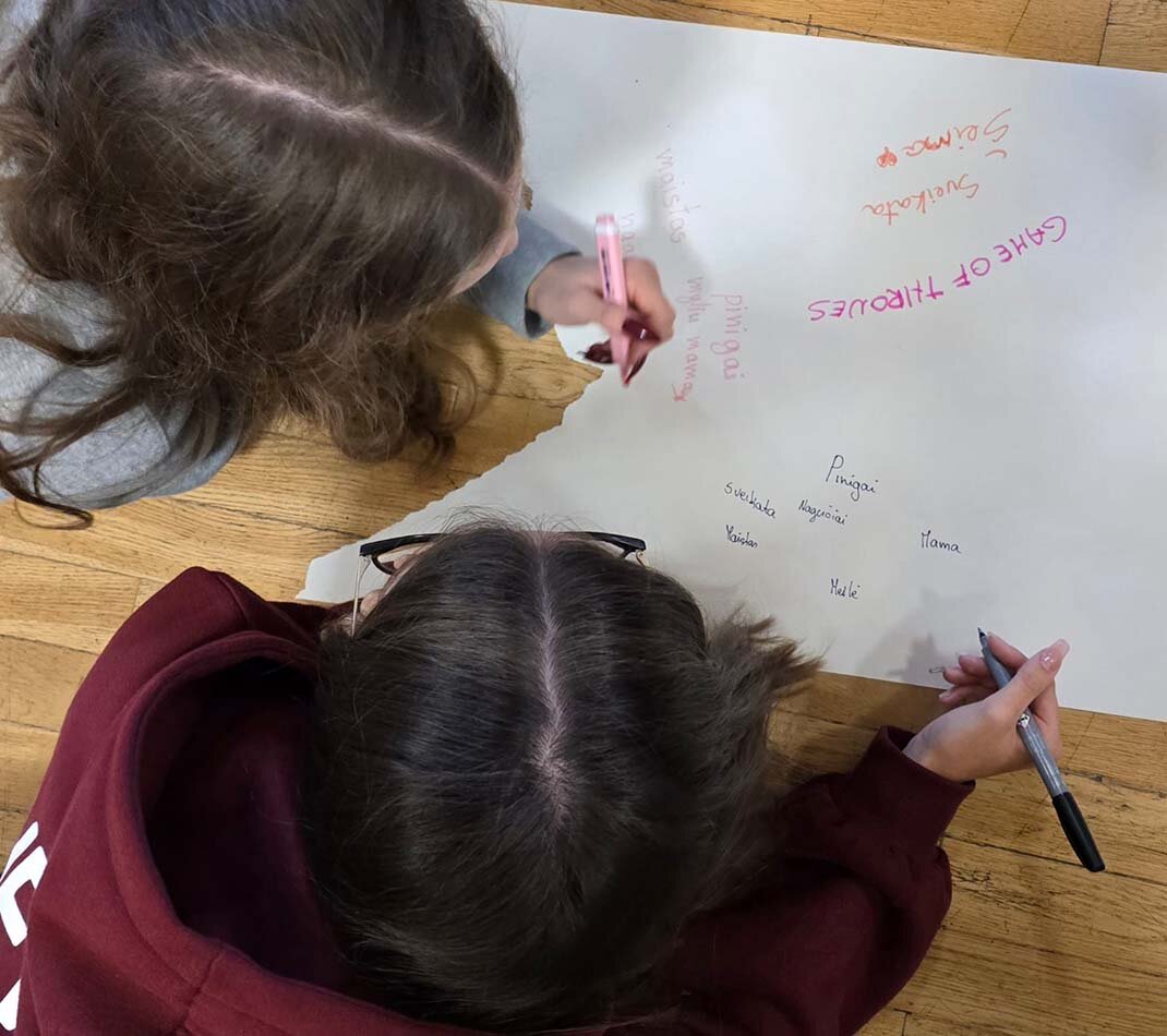 Visą lapkričio mėnesį gimnazijoje netyla šurmulys – startavo projekto „Tyrinėjimo menas“ veiklos. Iš pradžių mokiniai buvo nedrąsūs, tačiau dabar 1f ir 2e klasių mokiniai nekantriai laukia užsiėmimų, kuriuose jie ne tik kelia sau aktualius tikslus, bet ir mokosi, tyrinėja bei atlieka įvairias kūrybines užduotis. Kūrybinių praktikų metu mokinius aktyviai palaiko ir kartu su jais tyrinėja šių klasių auklėtojos, biologijos bei užsienio kalbos mokytojos.