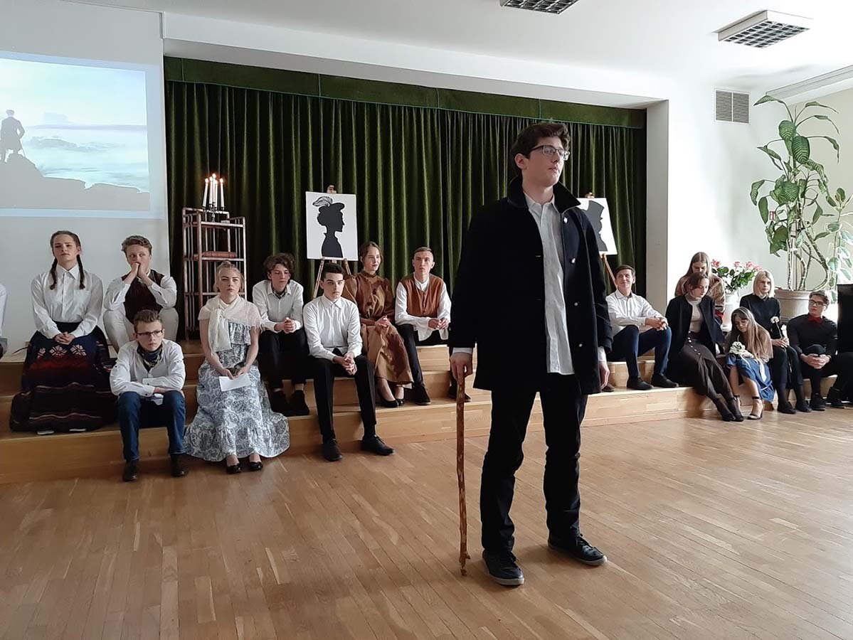 „Penktadienio popietę Karoliniškių gimnazija nusikėlė į XIX a. romantizmo gyvenimą. Įvairiomis kalbomis iš lūpų pasipylusios eilės nunešė į svajingą kasdienybę. Iš praeities atgimę autoriai ir jų kūriniai dar labiau pagilino šios epochos žinias. Prašmatnūs drabužiai, Vienos valsas ir nepriekaištinga vaidyba pavertė popietę tikra romantizmo diena.“ /A. Naraškevičiūtė/
