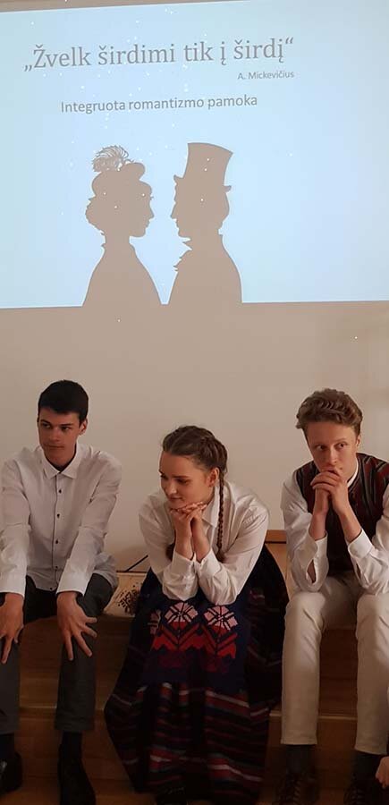 „Integruota pamoka apie Romantizmo epochą buvo nuostabi patirtis. Sužavėjo pasirodymų, kalbų įvairovė, kuri leido pasijusti tarsi tikrame romantizmo spektaklyje, daugiau sužinoti apie XIX a. kultūrą, tradicijas, požiūrį į supantį pasaulį, o puikūs kostiumai perteikė puošnumo, kilnumo jausmą. Mano nuomone, tokių pamokų turėtų būti kuo daugiau.“ /V. Pranckūnaitė/