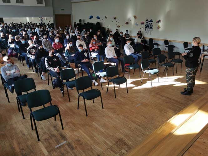 Karoliniškių gimnazistai plojimais padėkojo už informatyvią ir naudingą paskaitą. Išvyka į ugdymo įstaigą buvo informatyvi, tikslinga ir prasminga.
